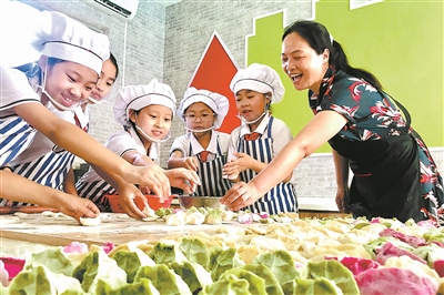 近日,山東省淄博市臨淄區(qū)稷下街道安次小學(xué)學(xué)生在老師指導(dǎo)下學(xué)習(xí)包水餃。學(xué)生居家學(xué)習(xí)期間,安次小學(xué)線上開(kāi)展“我是廚房小達(dá)人”活動(dòng),要求學(xué)生在家每周學(xué)做一道菜,復(fù)學(xué)后,該校將這項(xiàng)活動(dòng)搬到了勞動(dòng)課的課堂上。邊昌平 攝