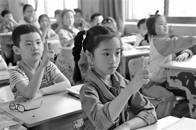 日前,山東省棗莊市薛城區(qū)雙語實驗小學(xué)編創(chuàng)了一套無接觸式眼保健操。學(xué)生們在大課間休息時,跟隨音樂節(jié)拍有規(guī)律地做無接觸式眼部保健練習(xí),此舉旨在既避免接觸感染的同時保護視力。圖為該校學(xué)生在做該套眼保健操第三節(jié)——遠近看練習(xí)。胡樂彪 攝