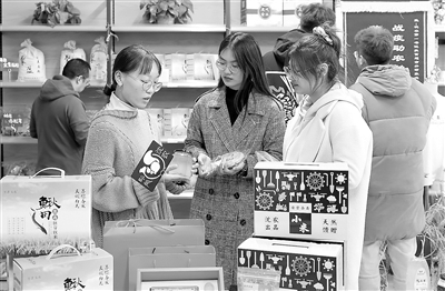 沈陽農(nóng)業(yè)大學(xué)大力開展消費扶貧,通過食堂優(yōu)先采購、在“黃金”地段開設(shè)扶貧超市等方式,把31名駐村扶貧干部所在村的土特產(chǎn)請進(jìn)校園,解決貧困村農(nóng)特產(chǎn)品銷售難問題,助力鄉(xiāng)親增收脫貧。圖為師生在扶貧超市選購?fù)撂禺a(chǎn)。張宜軍 本報記者 張學(xué)軍 攝