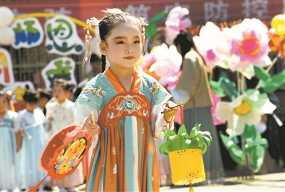 近日,在江西省德興市銅礦中區(qū)幼兒園,孩子們身穿古裝開心地賞花燈、猜燈謎。參加此次展示活動(dòng)的花燈全部都是該園孩子們?cè)诶蠋熀图议L的幫助下,利用閑置物品制作而成,各種造型別致的環(huán)?;?,讓人看了賞心悅目。卓忠偉 攝