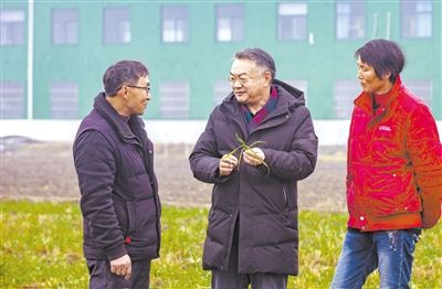 “你看這邊,葉尖有些發(fā)黃干枯了?!薄斑@片苗長得比較弱,可以適當噴施葉面肥。”走進小麥新品種優(yōu)質高產(chǎn)精準調控技術示范田,農(nóng)業(yè)農(nóng)村部小麥專家指導組成員、揚州大學農(nóng)學院教授朱新開習慣性地查看起小麥的長勢,和種植戶王友設、張紅女聊了起來。