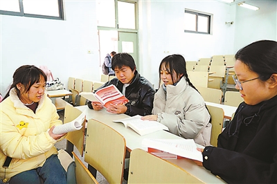 圖③ 12月25日,浙江農林大學東湖校區(qū)教學樓里,幾名學生在教室里交流學習《習近平新時代中國特色社會主義思想概論》的體會。陳勝偉 攝