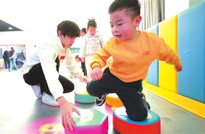 徐州幼兒師范高等??茖W(xué)校體育學(xué)院畢業(yè)生徐倩,創(chuàng)辦了多家體能訓(xùn)練中心。這是她在陪小朋友進(jìn)行體能練習(xí)。
