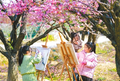 ①近日,浙江省湖州市長(zhǎng)興縣龍山街道中心幼兒園師生在梅花園寫(xiě)生。陳海偉 攝