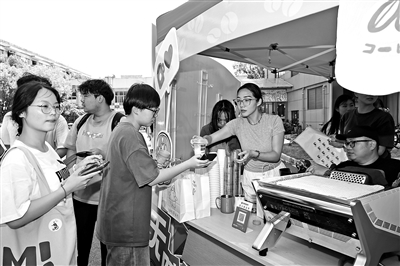 在公益“咖”位區(qū),“一日咖啡師”們專注制作手沖咖啡,每售出一杯“善意咖啡”,相應款項就將匯入慈善基金。