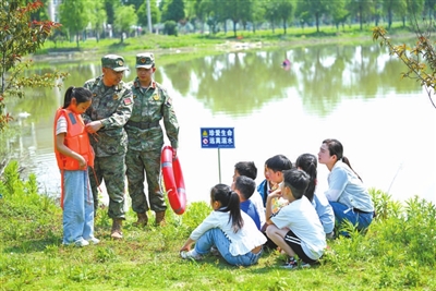 近日,在安徽省合肥市廬陽區(qū)三十崗鄉(xiāng)柴沖村,民兵在向?qū)W生示范救生衣的穿戴。安徽省合肥市廬陽區(qū)三十崗鄉(xiāng)武裝部聯(lián)合古城小學(xué)通過普及防溺水常識、演示緊急互救方法、體驗(yàn)救生器材操作等,強(qiáng)化防溺水安全教育。