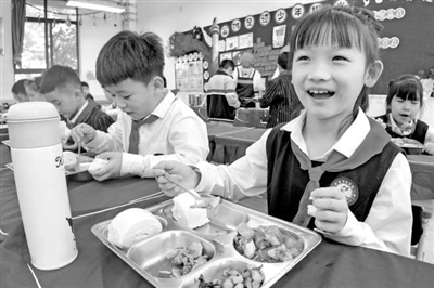 近日,河南省新密市政通路小學(xué)學(xué)生正在享用美味午餐。近年來,該校在做好食品安全監(jiān)管的同時(shí)落實(shí)校長、教師、家長陪餐制,確保校園食品安全。按照膳食營養(yǎng)搭配,制定科學(xué)的青少年健康食譜,確保青少年吃得安心、吃得健康、吃得科學(xué)。本報(bào)記者 單藝偉 攝