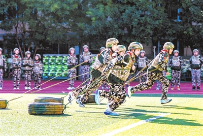 近日,內(nèi)蒙古呼和浩特市玉泉區(qū)五塔寺東街小學(xué)舉行“心系國防 強(qiáng)國有我”主題教育活動。學(xué)生通過參與抗戰(zhàn)故事講述、戰(zhàn)術(shù)演示、涂彩偽裝等軍事技能挑戰(zhàn)項(xiàng)目,在親身實(shí)踐與沉浸式體驗(yàn)中增強(qiáng)家國情懷與國防安全意識。