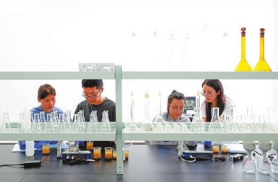 在定邊縣生態(tài)氣象聯(lián)合實(shí)驗(yàn)室,魏孝榮研究員團(tuán)隊(duì)研究生在測(cè)定鹽堿土pH(酸堿度)和電導(dǎo)率。