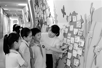 浙江省杭州市濮家小學(xué)師生在“問題墻”前交流。