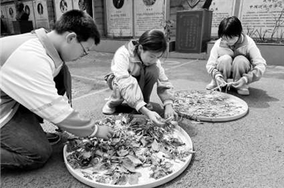學生正在涼茶個人實驗室里晾曬草本植物。楊志 攝