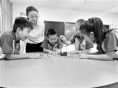 聊城市東昌府區(qū)英特學(xué)校的學(xué)生在教師的指導(dǎo)下做實驗。學(xué)校供圖