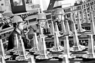 湖北文理學(xué)院教授吳華偉(中)在湖北三環(huán)鍛造有限公司指導(dǎo)生產(chǎn)。學(xué)校供圖