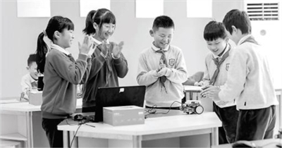 芙蓉區(qū)育英西垅小學(xué)編程社團(tuán)的學(xué)生們通過編程讓機(jī)器人動(dòng)起來。 學(xué)校供圖