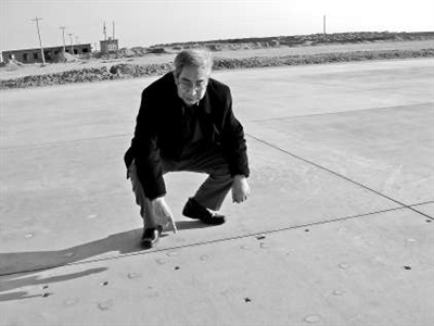 唐明述在考察機場道面的破壞與修補情況。 均為受訪者供圖