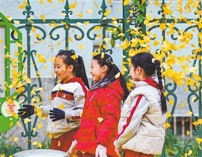 11月12日,3名小女孩在北京西城區(qū)什坊小街旁拋起銀杏落葉。初冬時節(jié),神州大地秋意尚未褪盡,斑斕色彩為初冬涂上一抹別致韻味。