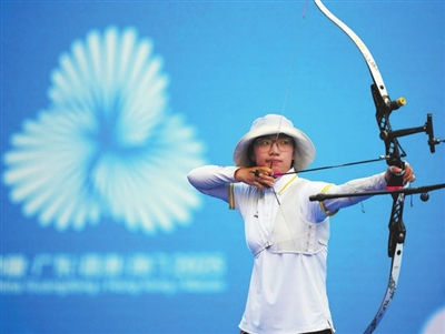 在射箭女子反曲弓個人決賽金牌決賽中,湖北小將宗鈺戰(zhàn)勝江蘇隊選手奪冠。