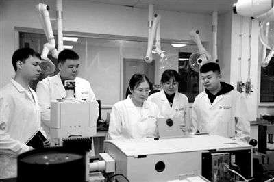 綠色造紙與資源循環(huán)全國重點(diǎn)實(shí)驗(yàn)室主任吉興香教授(左二)指導(dǎo)學(xué)生實(shí)驗(yàn)。