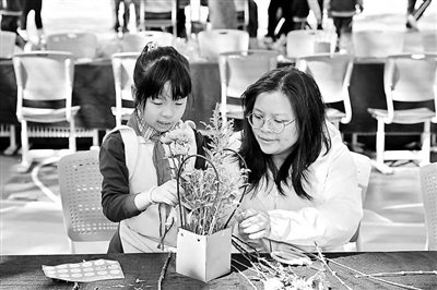 ?珠海市香洲區(qū)第十八小學(xué)開展的親子花藝活動現(xiàn)場。 珠海市教育局供圖