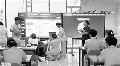 安徽省皖西衛(wèi)生職業(yè)學院附屬醫(yī)院老年護理??婆嘤柊嘟虒W現(xiàn)場。 資料圖片