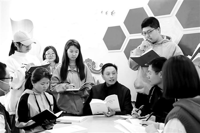 晉中信息學(xué)院師生在“一站式”學(xué)生社區(qū)共學(xué)黨史。學(xué)校供圖