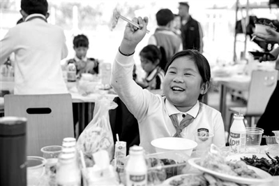 浙江省溫州市第二實(shí)驗(yàn)小學(xué)學(xué)生開心地品嘗自己燒制的菜肴。通訊員 劉吉利 攝