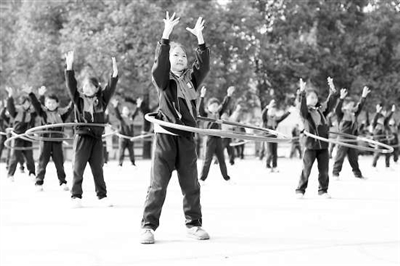 貴州省黔東南苗族侗族自治州岑鞏縣水尾鎮(zhèn)馬家寨小學(xué)學(xué)生在大課間轉(zhuǎn)呼啦圈。 通訊員 唐鵬 攝