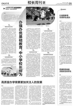 一年來,中國教育報校長周刊堅持“方向性引領,專業(yè)化服務”,著力“提升新聞性,強化專業(yè)性,做實服務性”,注重“問題導向,校長視角”,推出“以高質(zhì)量辦學推動教育強國建設”“報告廳”等欄目,圍繞重大教育政策、中小學辦學熱點難點,推出了推動九年一貫制學校高質(zhì)量發(fā)展、集團化辦學、鄉(xiāng)村小規(guī)模學校建設、班主任隊伍建設、促進縣中振興、提升中小學校長課程領導力等一系列選題策劃,今天,我們重溫這些話題和文章,以期從中凝聚起中小學校長高質(zhì)量辦學的磅礴力量,從而更好推動教育強國建設。