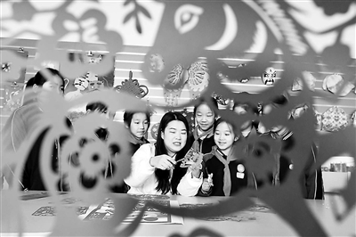 12月24日,在河北省廣平縣第四實驗小學(xué)課堂上,教師在指導(dǎo)學(xué)生創(chuàng)作剪紙作品。程學(xué)虎 攝