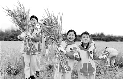 彎腰拾得粒粒穗,勞動課堂悟真知。無錫市教育局供圖