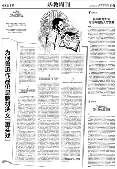 11月24日5版“教材熱點面對面”欄目《為何魯迅作品仍是教材選文“重頭戲”》