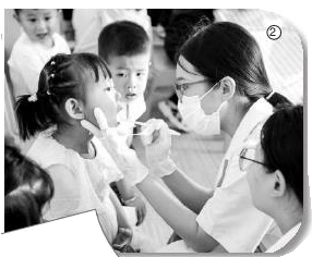 師生志愿者到當(dāng)?shù)赜變簣@為小朋友提供口腔健康檢查服務(wù)。