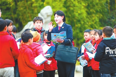 近日,檢察干警在貴州省黔西市綠化白族彝族鄉(xiāng)培育小學(xué)利用課間對學(xué)生進(jìn)行法治宣傳。視覺中國供圖