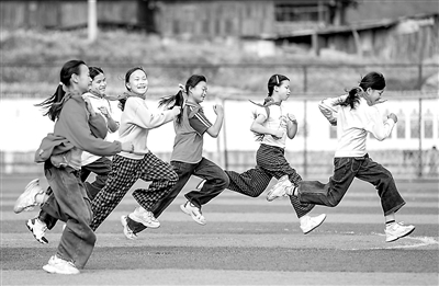 ▲貴州省從江縣剛邊壯族鄉(xiāng)中心小學(xué)學(xué)生在進(jìn)行趣味跑。