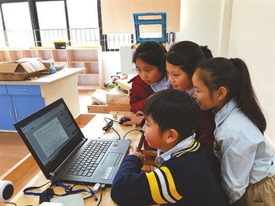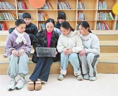 重慶市江北區(qū)濱江小學(xué)校師生在校園數(shù)字化閱覽室開展主題共讀活動。學(xué)校供圖