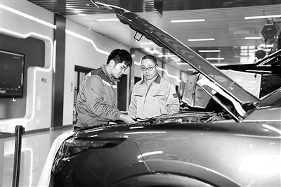汽車工程學院學生在新能源汽車實訓室學習。 學校供圖