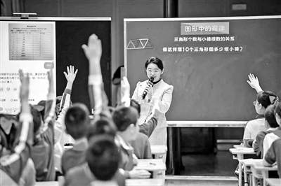 ①在第一屆“AI大模型課堂教學(xué)創(chuàng)新應(yīng)用”觀摩研討會(huì)上,孫偉健在上AI融創(chuàng)課《圖形中的規(guī)律》。