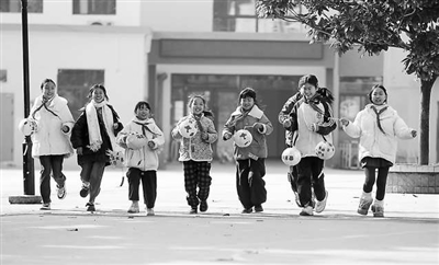 1月15日,貴州省黔西市永燊彝族苗族鄉(xiāng)花石小學(xué),孩子們手拿自制的迎新春花燈奔跑。周訓(xùn)超 攝