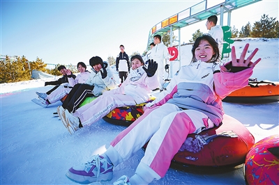 不遠處的雪圈滑道上正在上演速度與激情。學生們?nèi)褰Y(jié)伴乘雪圈順坡而下,寒風撲面,雪末飛濺,驚呼聲與歡笑聲隨著雪道起伏回蕩。“那種自由又刺激的感覺,是在教室里完全體會不到的?!睂W生溫傈然滑至終點,臉上帶著運動后的紅暈,呼著熱氣,興奮地說。
