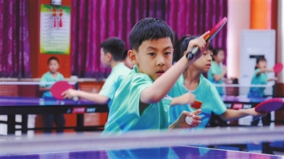 今年讀二年級的劉浩然,接觸乒乓球已有一年多時間,他告訴記者:“剛開始,我覺得好難?!苯涍^不斷訓練,他慢慢適應,并逐漸愛上了乒乓球。“季老師帶著我們一遍遍地練習、糾正動作,一上午的時間不知不覺就過去了?!?/p>