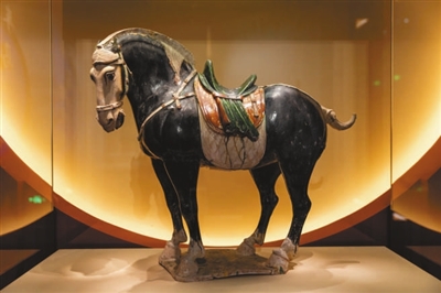 唐代三彩黑釉陶馬
